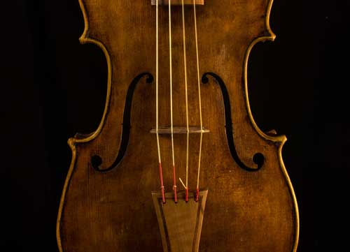 Long fascinated by the various models of Giovanni Battista Rogeri, this is a personal model viola with lower arching, though as one can see, deeply sculpted and dramatic. G.B. Rogeri often did very elegant merging of Cremonese and Brescian traditions in his instruments. (SOLD)