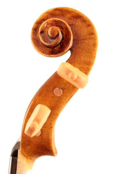 One of the first baroque violas finished and made entirely in Spain, this baroque viola has a back of willow, top of spruce aged over ten years. The fittings are of pear wood and all handmade. Carlo Giuseppe (c. 1665–1738) was the patriarch of the Testore family, and although his double basses are much more common, a few violas do exist which are unique and beautiful. Milanese instruments are usually built without a mould, as is this particular viola. Musicians can expect a very comfortable and versatile instrument, with even, balanced tone. It is a myth that willow produces instruments with less projection and power; this viola has a wonderful range of tonal color and a lovely, antique sound which I am always seeking. (SOLD)
