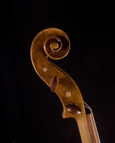 A pure flight of fantasy, this instrument lends a respectful nod towards the Black Forest school of violin making in the 17th Century. Although this tradition of Lutherie never actually adorned their scrolls with human heads or other sculpture, the temptation was too great to embark upon pure poetry when making this very special viola. Often lovingly adorned with complex intarsia, the Krauchtaler school produced some of the first contralto-sized violas ever to come to life. This viola will be available for trial in June, 2023 at the Boston Early Music Festival . (SOLD)