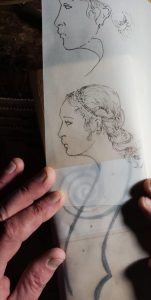 Viols with violin shaped outlines in the Italianate tradition offer a unique opportunity for expression of feeling and sound. This tenor with a corpus size of 56cm will have an all cedar top, with wonderfully figured Mahogany for the ribs and back. Like the original in the Orpheon consort collection, both plates will be arched, adding to the possibility of total control of sound. The rather heavy Blackwood scroll will provide a counterbalance in weight ratios, as well as optically matching the palates of maroon hues in the corpus.
